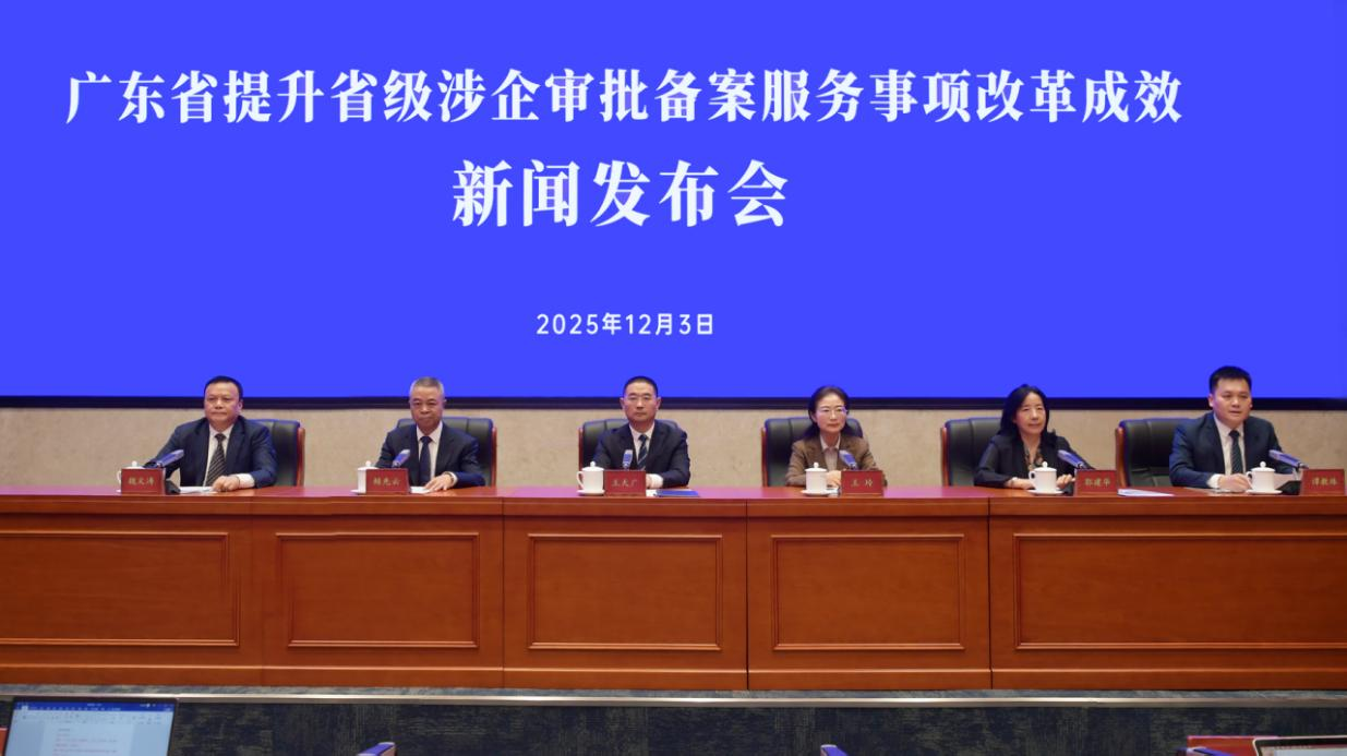 12月3日,广东省提升省级涉企审批备案服务事项改革成效新闻发布会召开。同时,会上发布了《广东省提升省级涉企审批备案服务事项办理时效公开清单》。